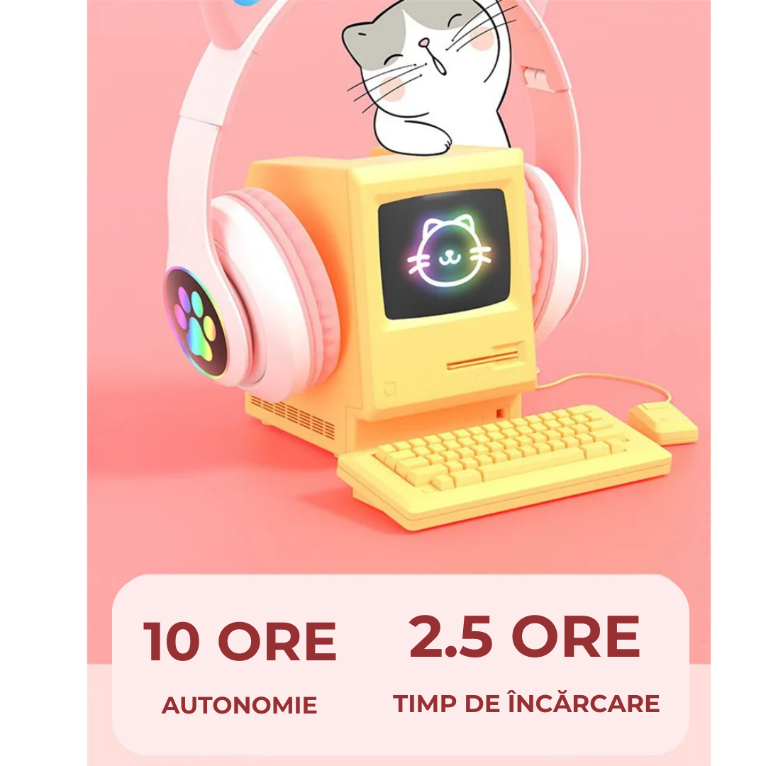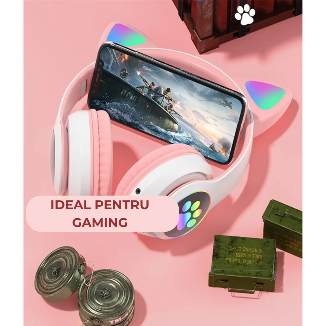 „„Perfecte pentru gaming! Le folosesc când mă joc și sunetul e clar, fără lag. Și îmi plac mult urechiușele luminoase, adaugă un vibe special.”