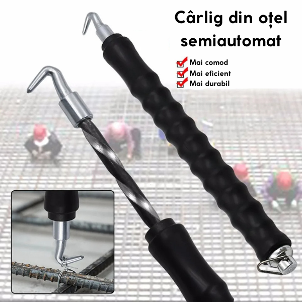 Cu această unealtă semiautomată, legarea sârmei devine un proces simplu, rapid și eficient. Ideală pentru șantiere, fundații, garduri sau lucrări DIY.