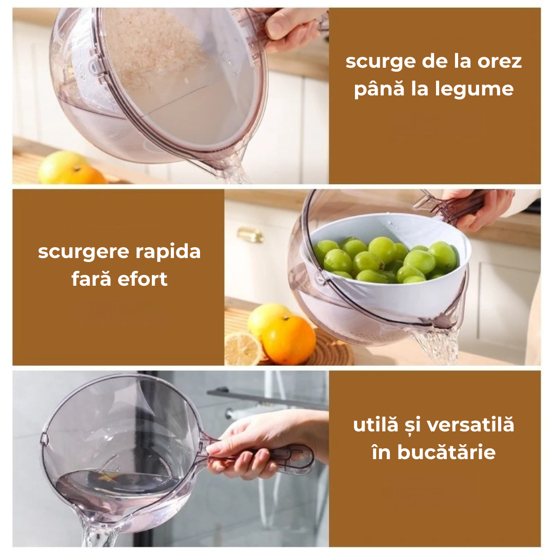 „„Foarte practic și ușor de folosit. Îl folosesc zilnic pentru spălat fructele și legumele, iar apa se scurge rapid fără să mai stau cu ele în chiuvetă."
