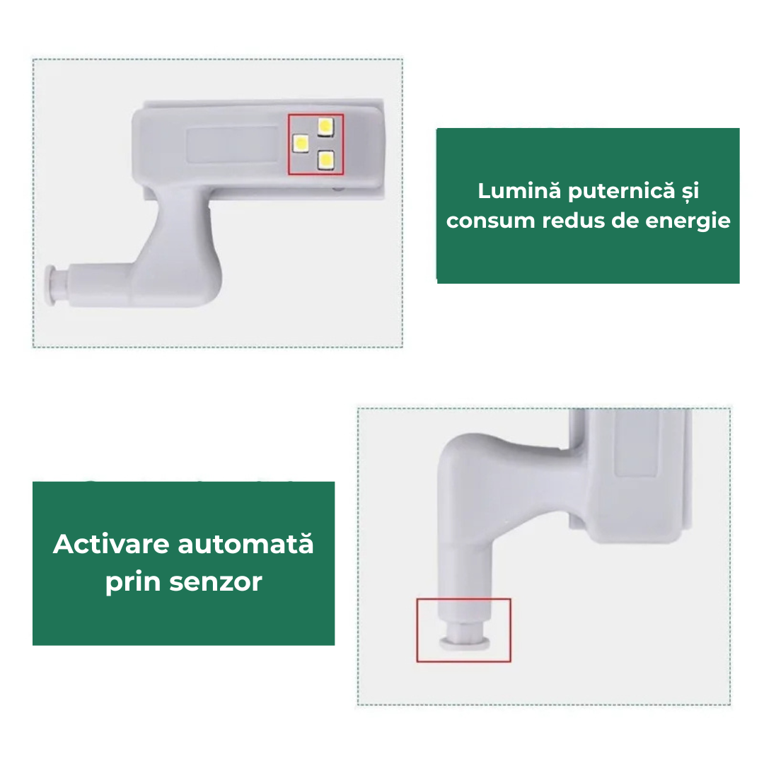 Datorită senzorului inteligent, lumina LED se activează automat atunci când ușa dulapului sau a sertarului este deschisă, oferind vizibilitate instantanee fără efort.