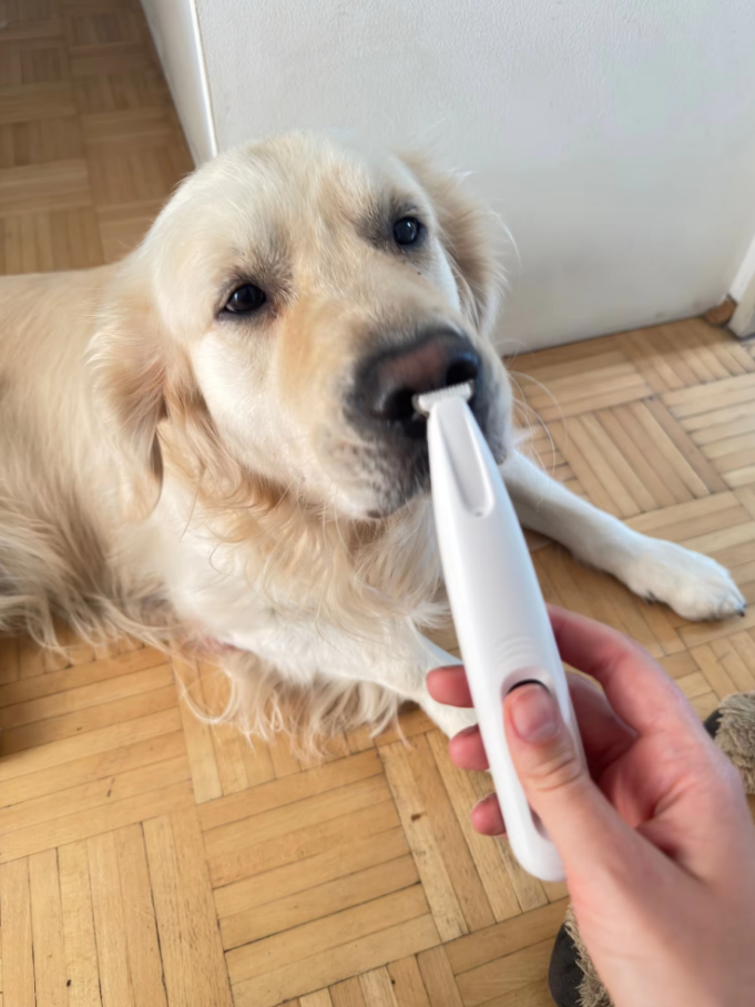 „Îl folosesc pentru câinele meu și e o plăcere. Rezistent la apă, se curăță rapid și lama lată face tot procesul mai scurt.”