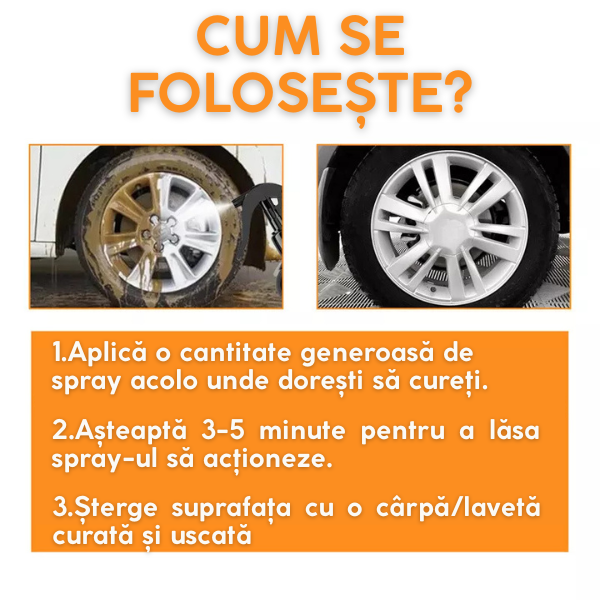 "Un produs incredibil! L-am folosit pe roțile mașinii mele și efectul a fost uimitor. Curăță rapid praful de frână și murdăria de pe drum, lăsând roțile ca noi. Recomand cu încredere!”