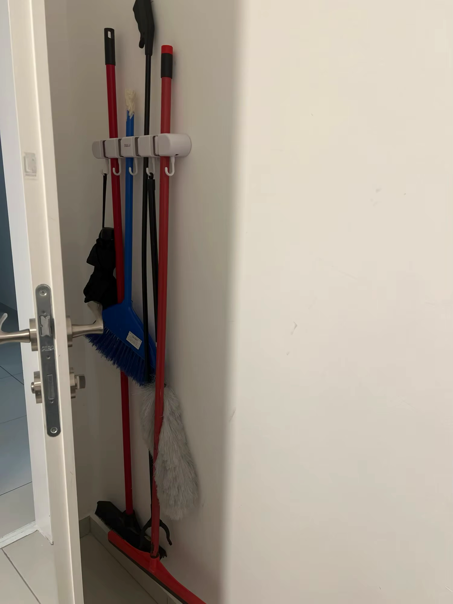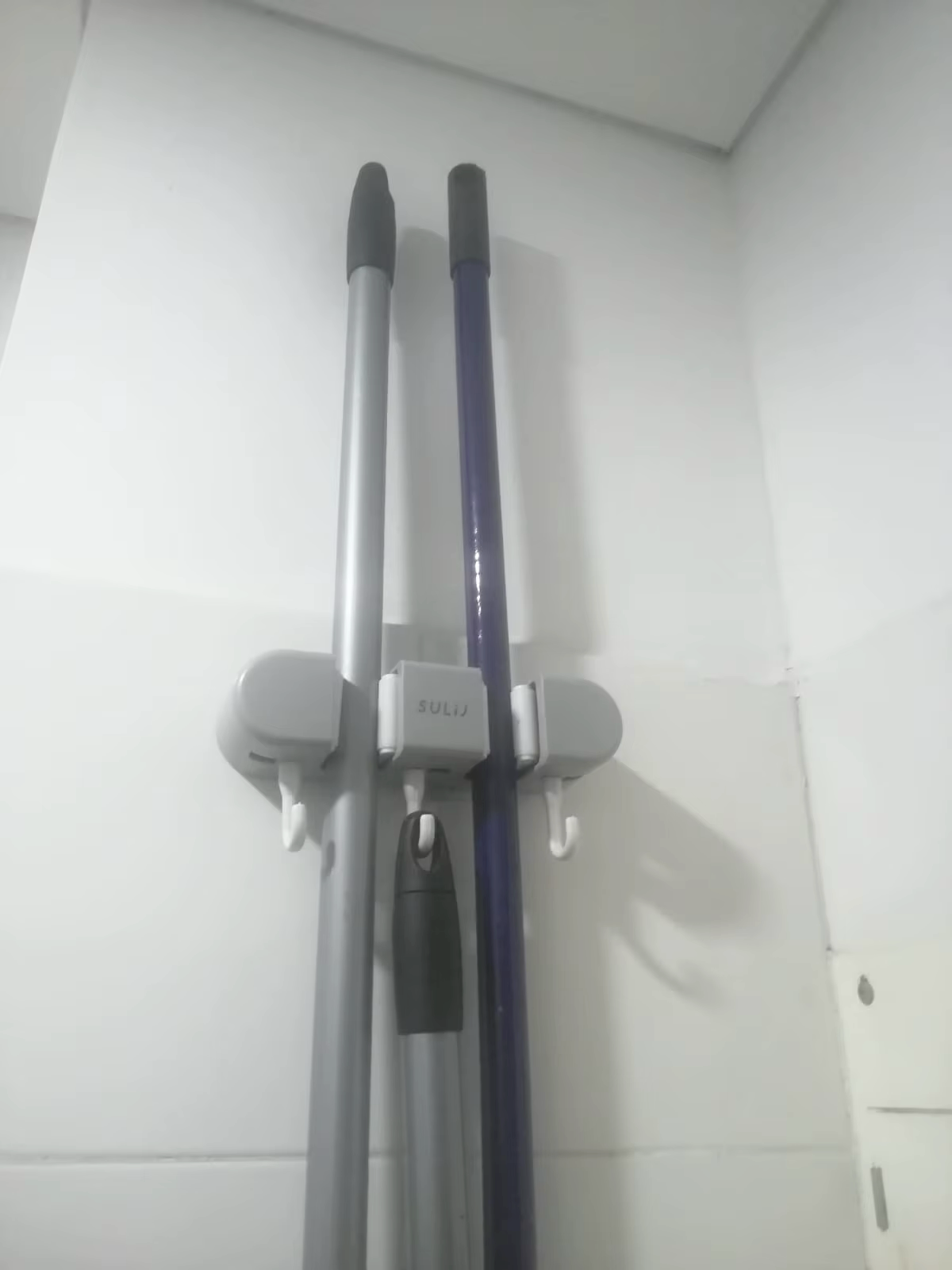 "Nici nu se observă după ușă. Înainte le țineam aruncate aici dar mereu cadeau sau zgâriau peretele. Acum stau in sfârșit în ordine."