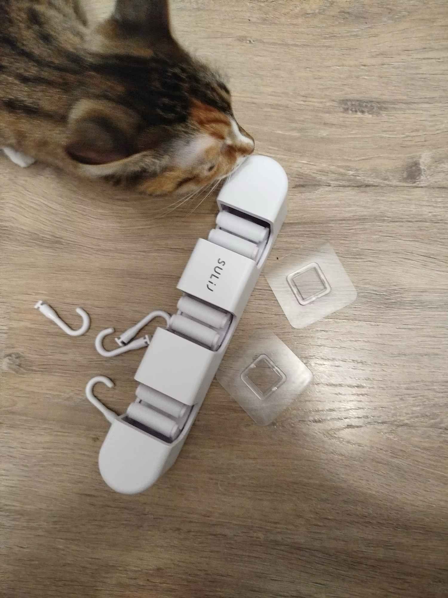 “Foarte practic și ușor de montat. Îl folosesc în baie și m-a ajutat să scap de dezordine. Cârligele sunt super utile! Până și pisica îl adoră!”
