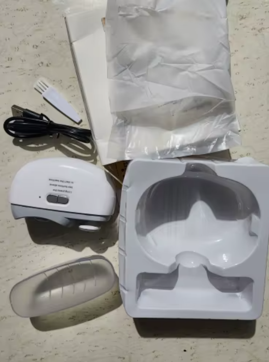 Cu o singură apăsare de buton, aparatul taie, pilește și aspiră resturile de unghii. Este ideal pentru oricine caută o soluție rapidă și comodă pentru îngrijirea unghiilor acasă.